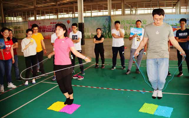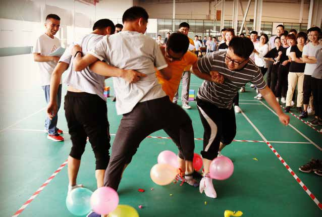 再就是說(shuō)說(shuō)趣味運(yùn)動(dòng)會(huì)項(xiàng)目吧,有“閃電脫兔、飛燕游龍、飛箸移珠、極地投籃、心心相印、芝麻開門、水漫金山、神筆馬良、歡樂(lè)爆破”等比賽活動(dòng),讓我記憶最深刻的是歡樂(lè)爆破---踩氣球活動(dòng),在這個(gè)活動(dòng)中,大家你爭(zhēng)我搶,氣氛異常活躍,一旁的觀眾激動(dòng)地吶喊助威,同事們?cè)诒频穆曇糁校w會(huì)到了此次趣味運(yùn)動(dòng)會(huì)的樂(lè)趣。第一項(xiàng)“歡樂(lè)爆破”項(xiàng)目點(diǎn)燃了全場(chǎng)的氣氛,場(chǎng)上選手既要想方設(shè)法把對(duì)方的氣球踩破,又要千方百計(jì)地保護(hù)好綁在自己腿上的氣球,與此同時(shí),為了不犯規(guī)又不能越線,還要提高和綁在一起同伴的默契度,綜合比較,很考驗(yàn)一個(gè)人的綜合實(shí)力。無(wú)論是哪一個(gè)項(xiàng)目,從同事們臉上露出的笑容,就可以體會(huì)出那種快樂(lè)的釋放。